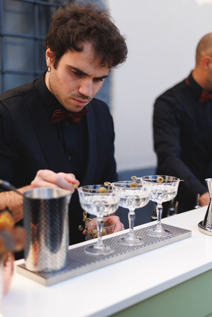 Leonardo’s background comes from behind the bar. Years of experience as a bartender gave form to the original idea: a cocktail service that understands timing, technique, and the crucial role the bar plays within a wedding or private event.