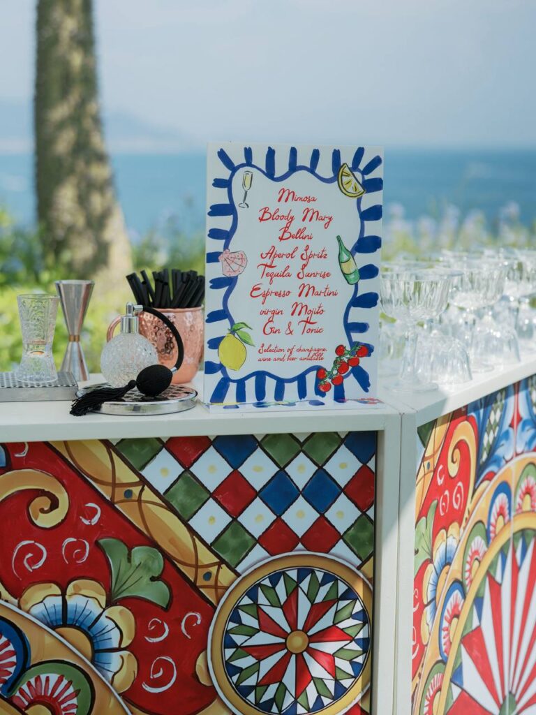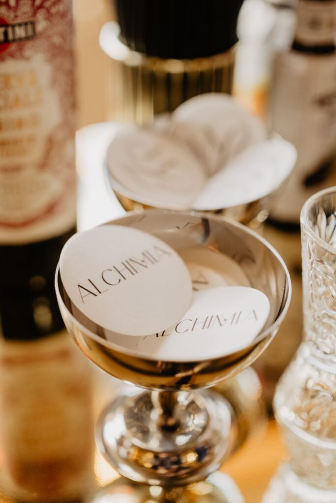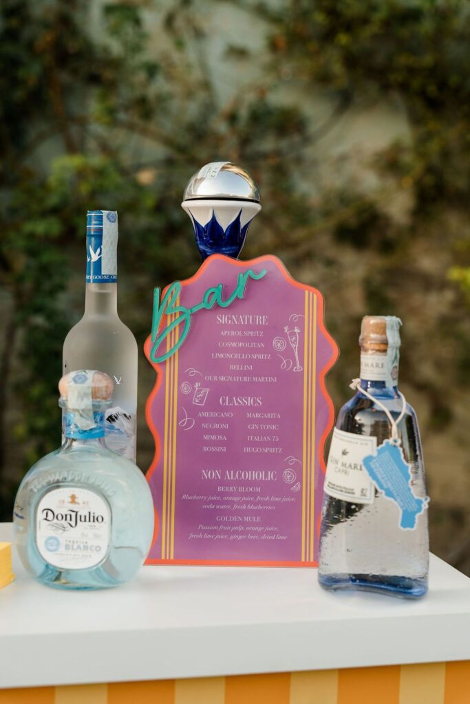 Drink lists are also custom-designed, either in a standard personalized format or on acrylic materials, to align seamlessly with the event’s aesthetic. Each element is carefully integrated to feel intentional, elegant, and consistent with the overall design concept.